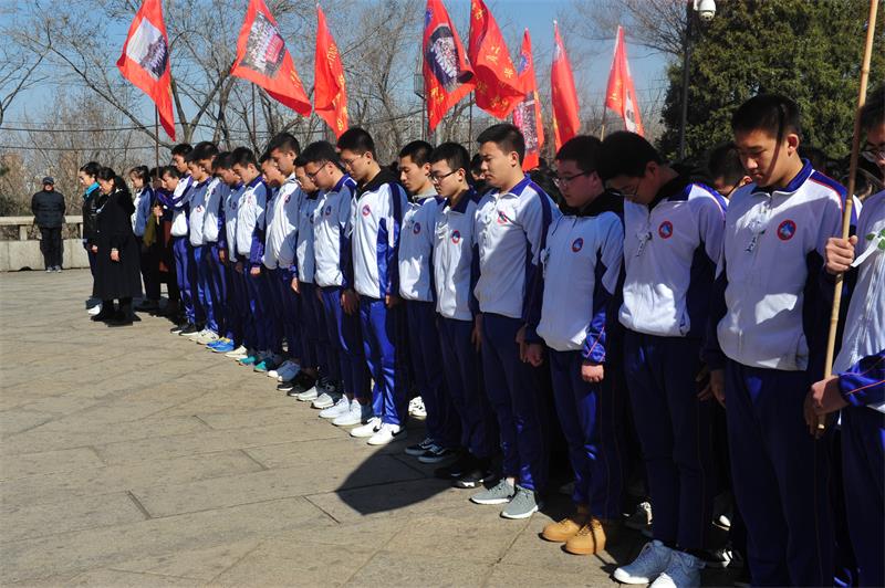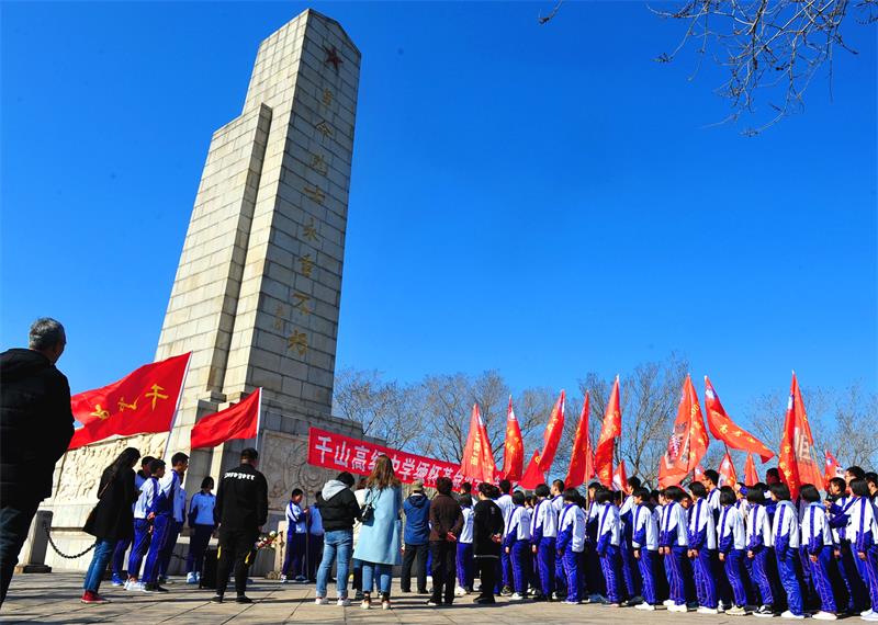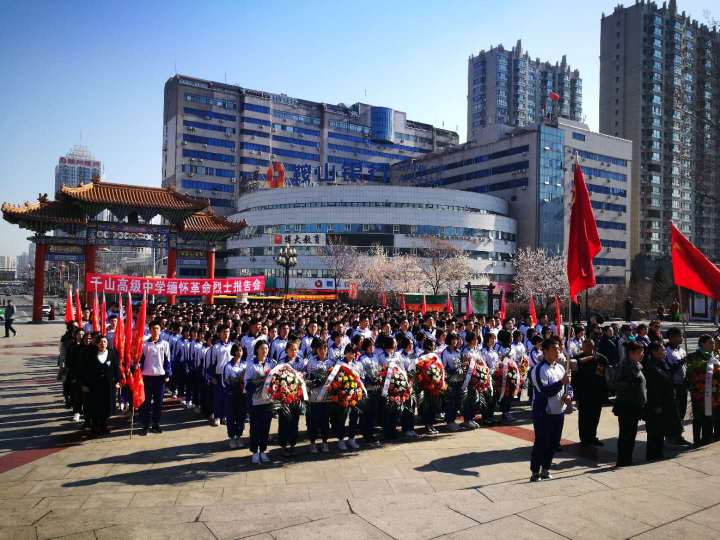 “桃花红雨英雄血,碧海丹霞志士心。今日神州看奋起,陵园千古慰忠魂。为悼念革命烈士,缅怀先烈的丰功伟绩,在清明节来临之际,鞍山市千山高中举行以继承民族优良传统,弘扬英雄奉献精神为主题的清明烈士山扫墓活动。