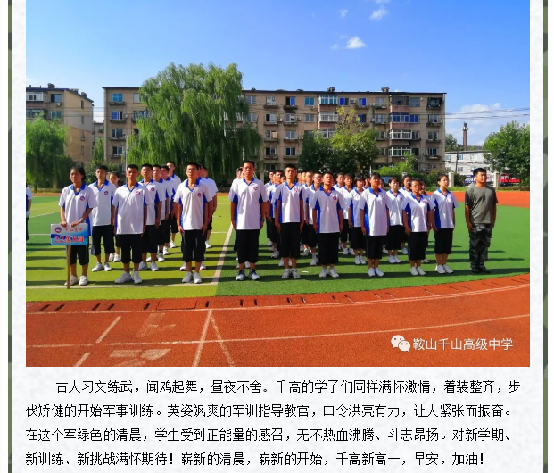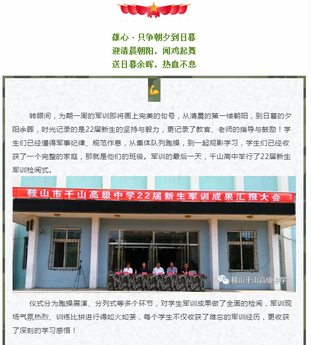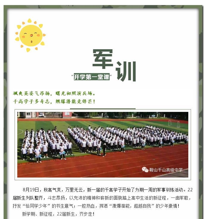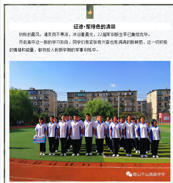 秋高气爽当展翅,军歌嘹亮心飞扬 ——记千山高中22届新生军训生活