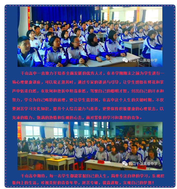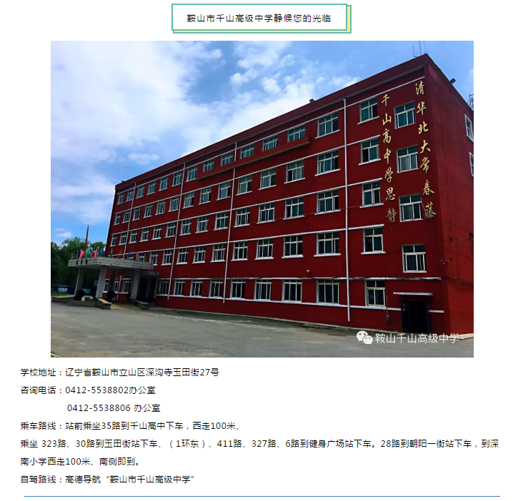 鞍山市千山高级中学 激爆潜能 追求卓越 低进高出 优进精出